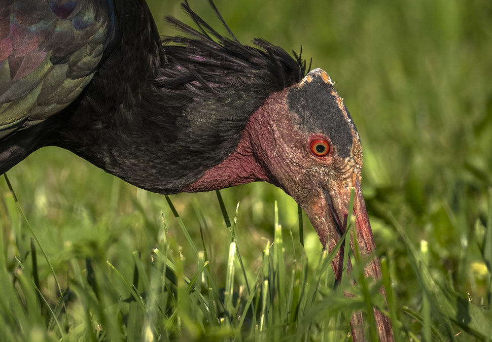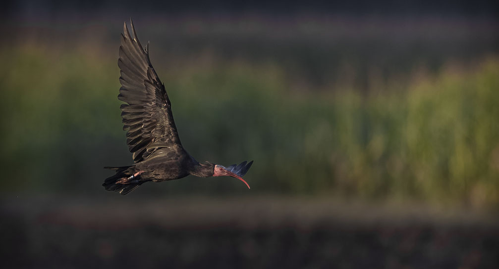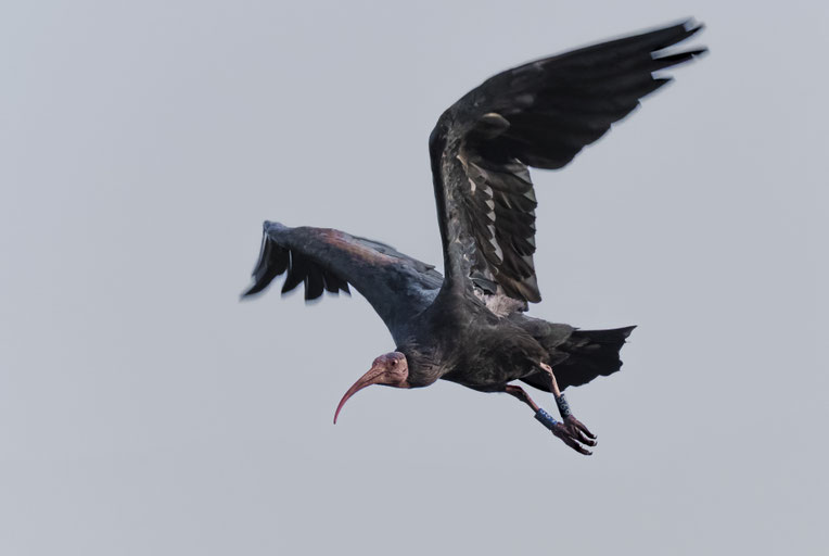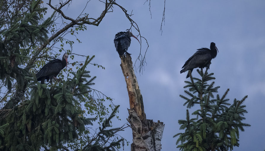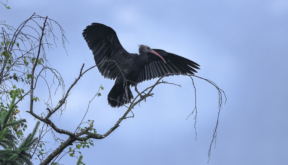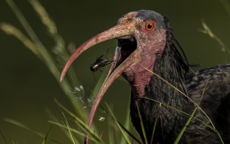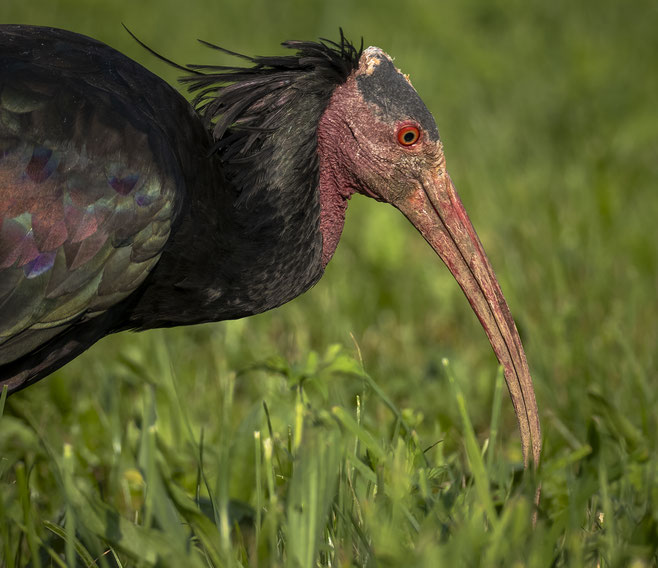 Unbekümmert spielen hier Waldrappen im österreichischen Raum auf der Wiese.
