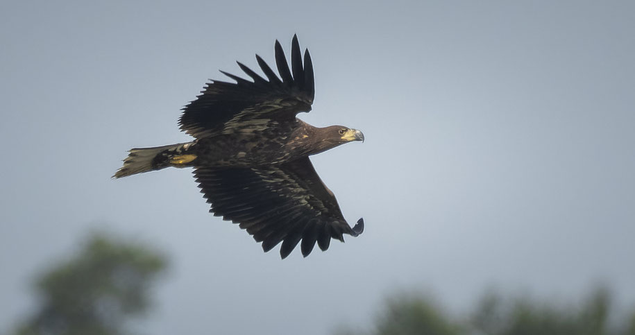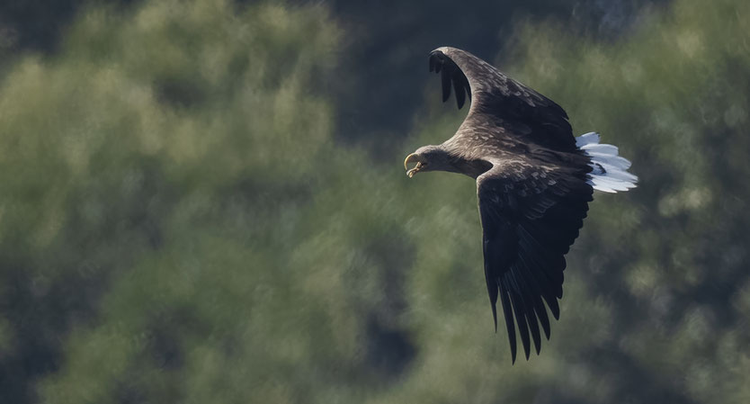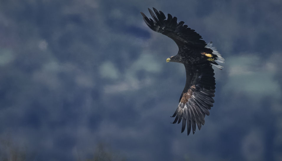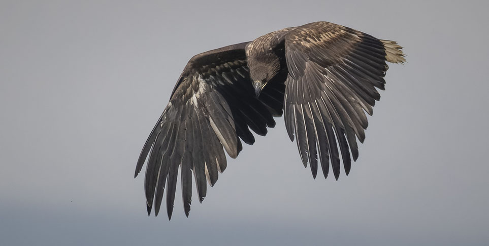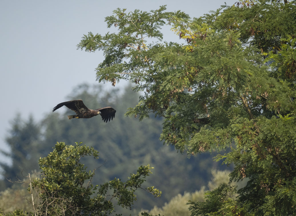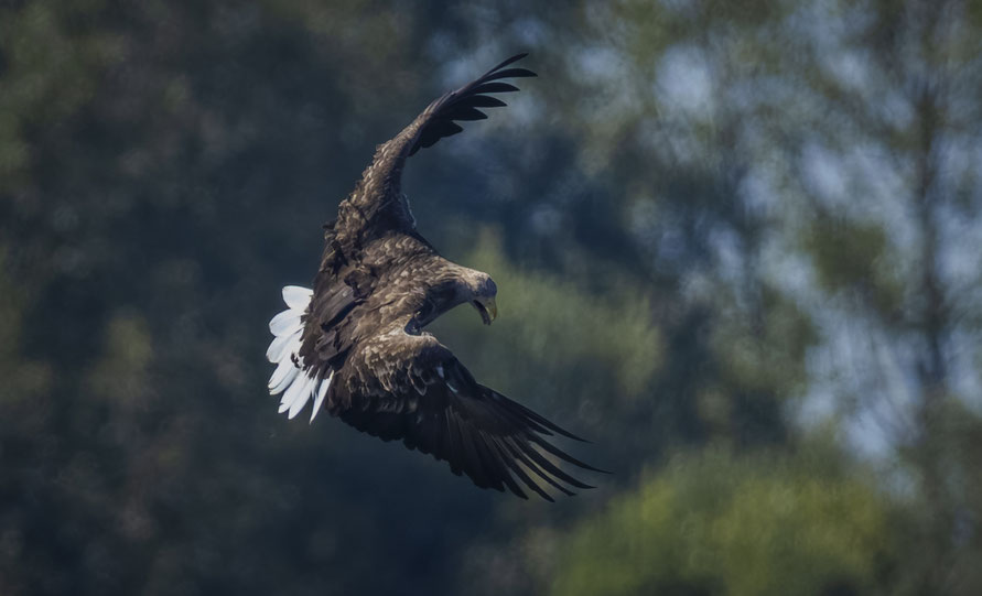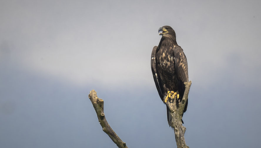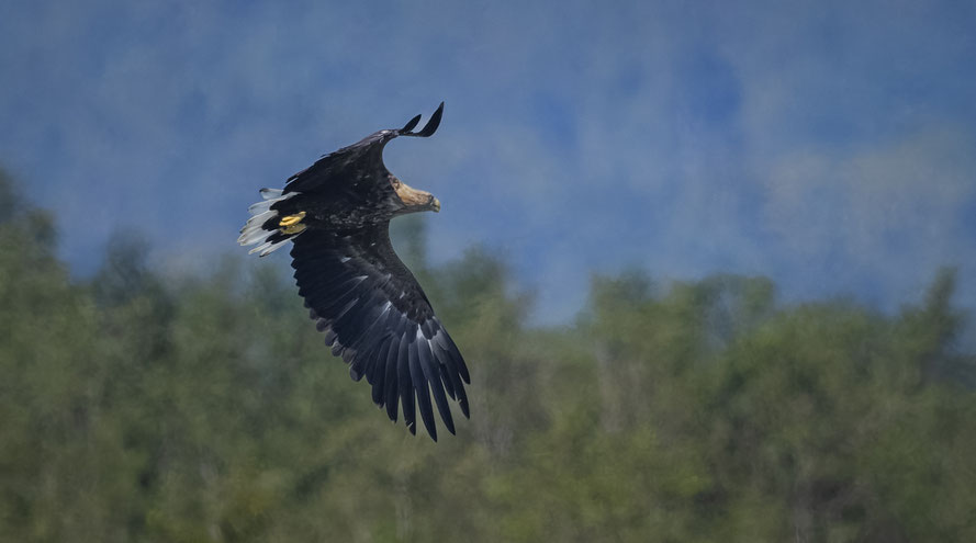 Die Rundflüge weiten sich aus - jetzt wird der junge Seeadler das erfolgreiche Jagen lernen.
