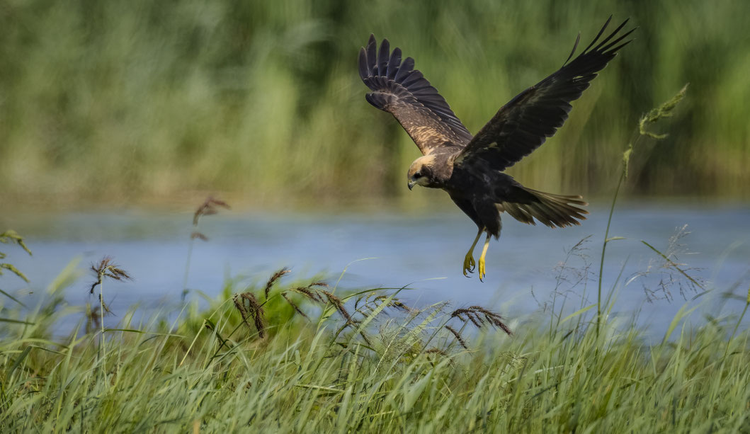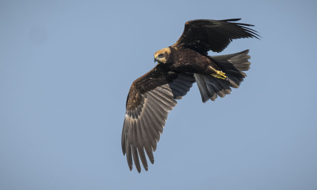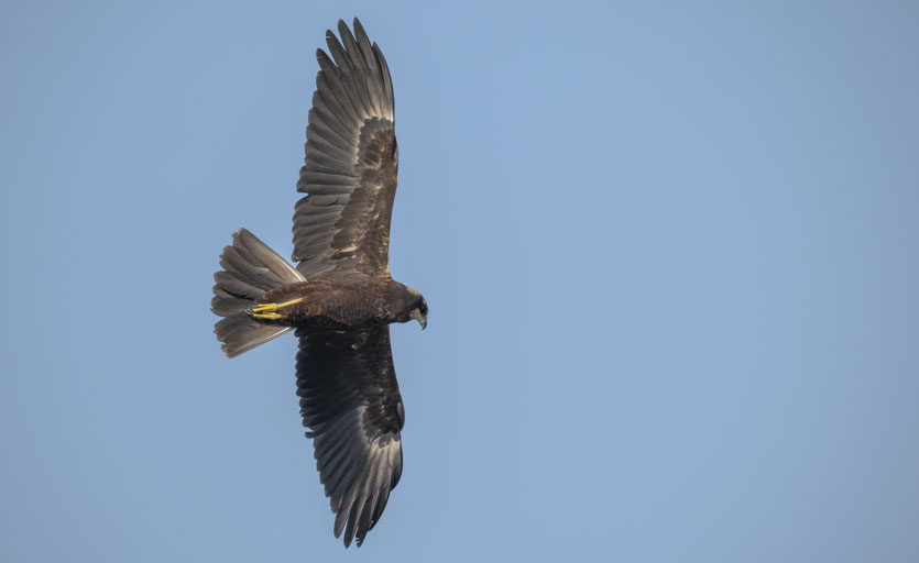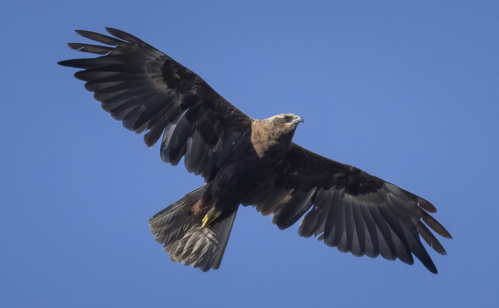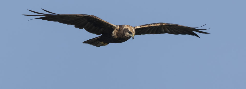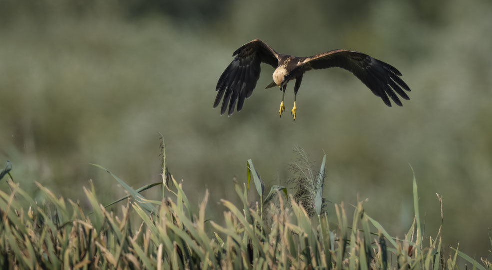 - die weibliche Rohrweihe ist ein zuverlässiger Begleiter und Beobachter des Fotografen über lange Zeit.