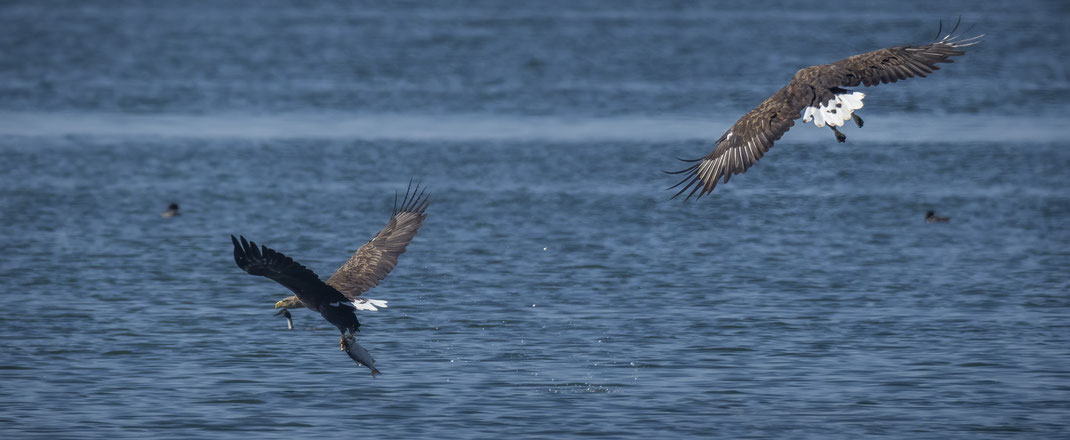 Am Chiemsee jagen die Seeadler jetzt regelmäßig und scheuen keine Mühe.