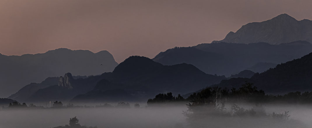 Vom Schlafplatz der Waldrappen nach Süden schauend erahnt man schon die Vorboten des Herbstes.