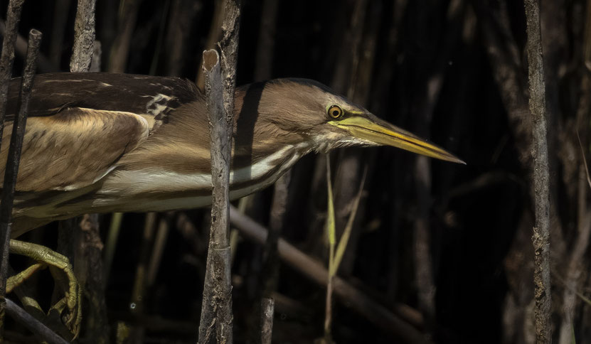 Die jungen Zwergdommeln entwickeln sich prächtig, sind aber gut getarnt und noch sehr klein.