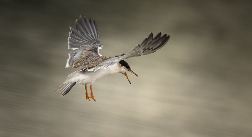 Bereits die jungen Flussseeschwalben zeigen ihre Eleganz und Ästhetik bei den ersten Flügen.
