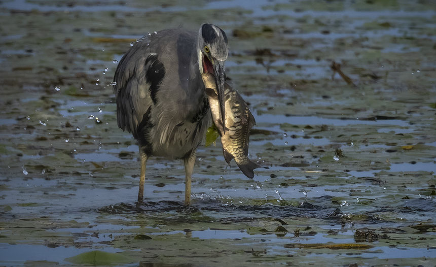Erfolgreich bei der Jagd waren dagegen die so unglaublich scheuen Graureiher - immer äußerst aufmerksam