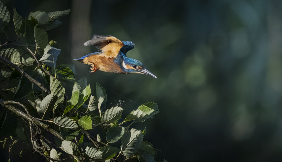 Der Eisvogel fliegt bald zielgerichtet und mit rasantem Tempo - er ist jetzt auf Beute aus.